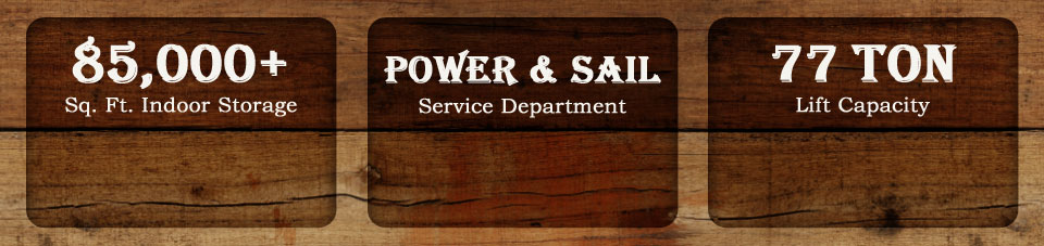 With a lift capacity of 77 tons, our marine service yard offers heated and unheated storage facilities, along with accommodations for outdoor mast-up sailboat storage. Besides our 77 ton marine travel lift, we also have a 40 ton self-propelled Con-O-Lift hydraulic trailer, a 20 ton Con-O-Lift hydraulic trailer, a 20 ton hoist, and crane and fork lifts. Our yard can service and store boats from 13 feet to 70 feet in length. We pride ourselves on offering competitive, quality service for both power and sailboats.