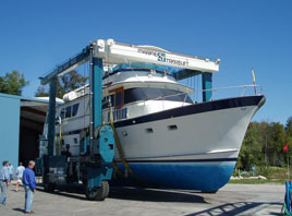 We are equipped to handle the needs of a wide-variety of boats with our 77 ton marine travel lift, 40 and 20 ton self-propelled con-o-lift hydraulic trailer, 20 ton hoist, crane, and fork lifts. Our team can service and store boats from 13 to 70 feet in length in our outdoor mast-up storage yard or indoor heated and unheated storage buildings.